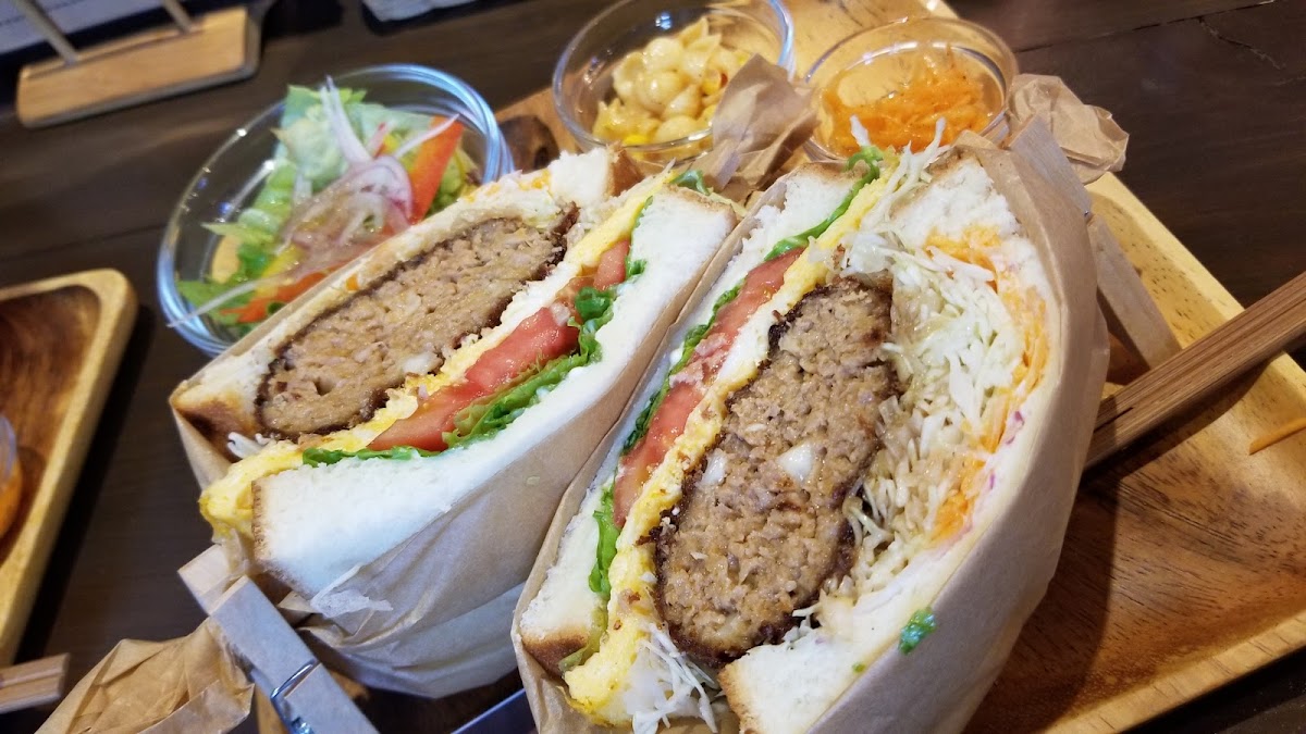 The menu features an array of thoughtfully prepared dishes, ensuring fresh ingredients and authentic flavors. Notably, the 大仏サンド (Daibutsu Sandwich) stands out with its impressive thickness, bursting with layers of juicy minced cutlet and vibrant vegetables. Accompanied by a wholesome selection of 雑穀米 (multigrain rice) on the side, it promises a satisfying and health-conscious meal experience that will leave you both full and fulfilled.